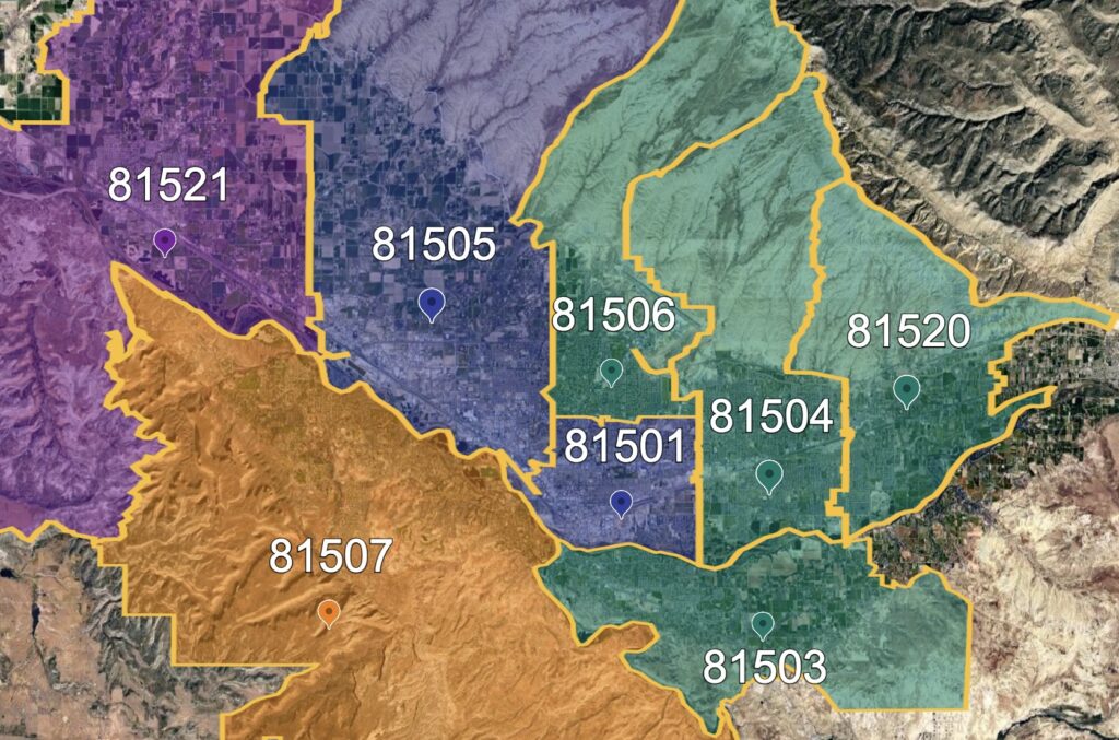 We consider homes within these zip codes “In-Zone”: 81504, 81501, 81503, 81521, 81520, 81507, 81505, 81506, 81502
